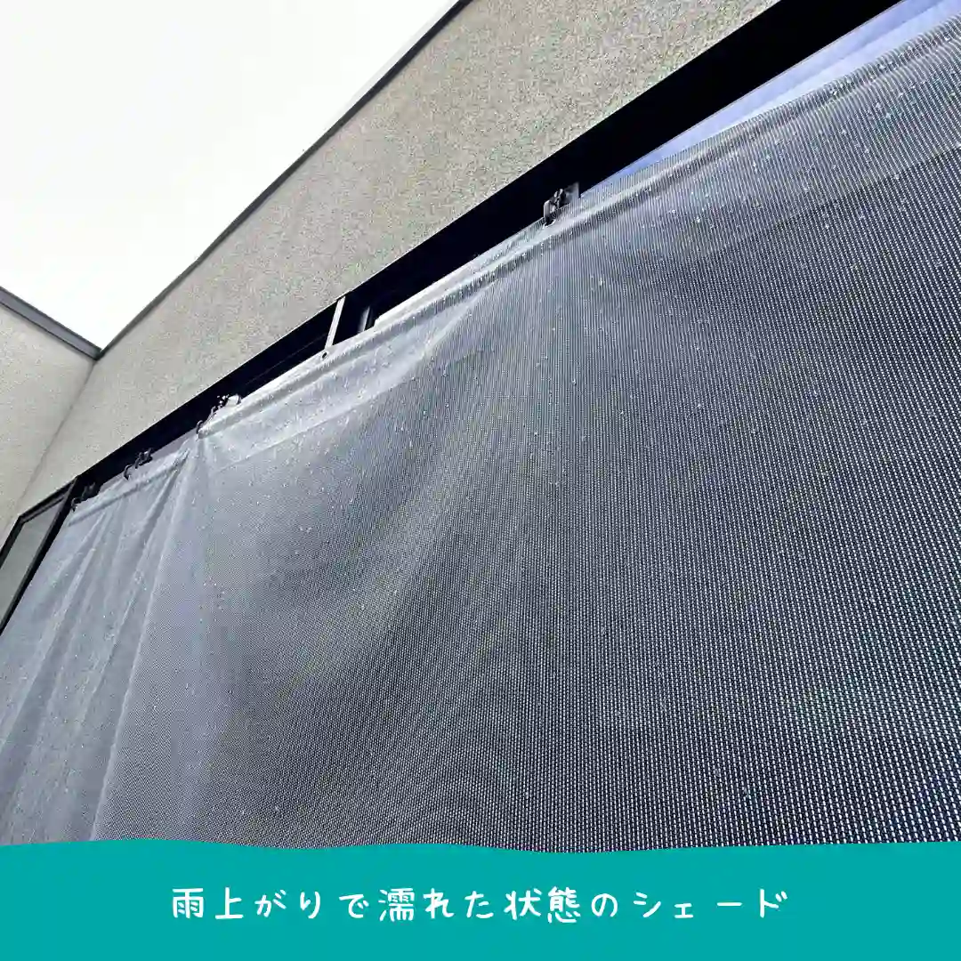 メッシュ素材のシェードは生地に雨が残りやすく、そのまま放置するとカビや匂いの原因になります。