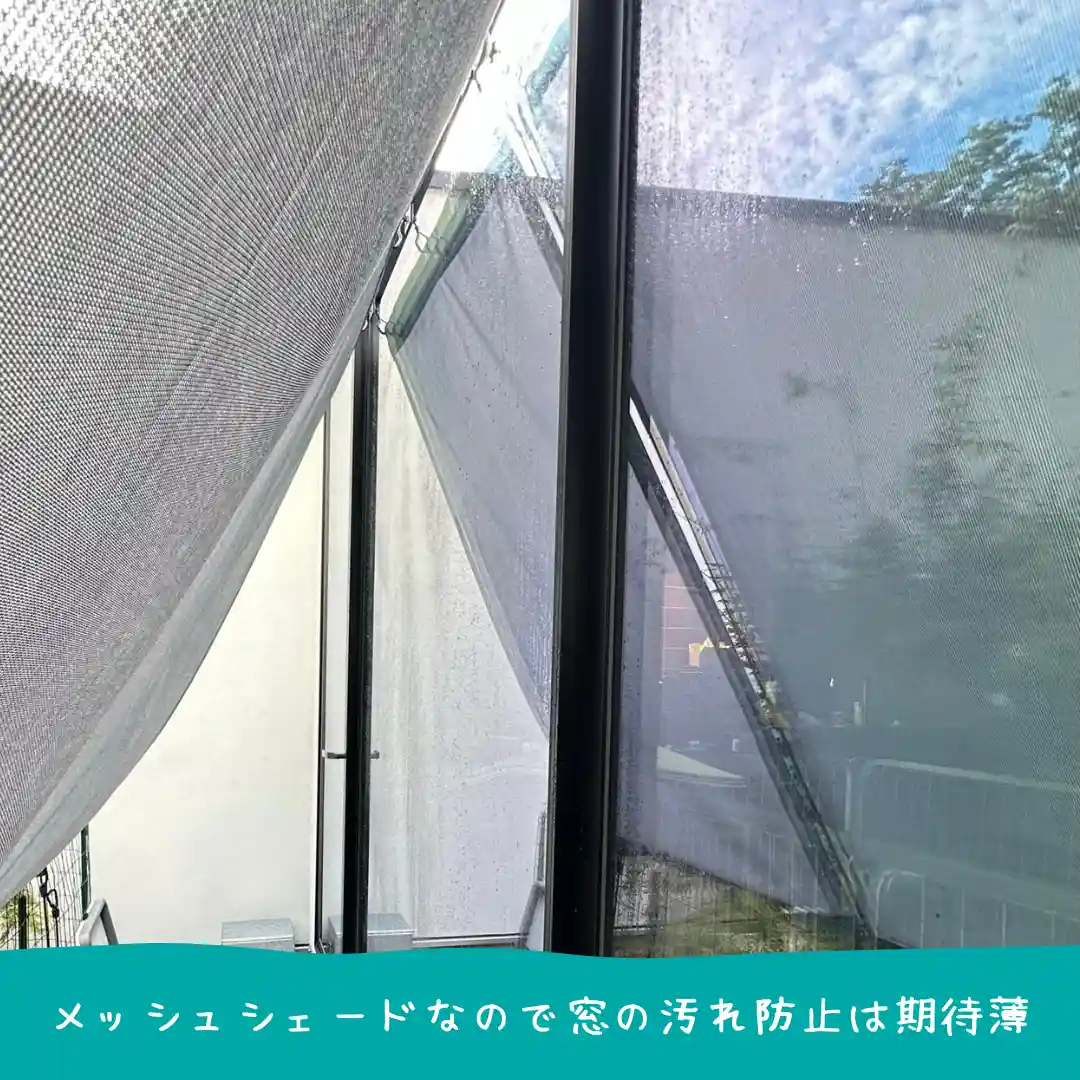 シェードを設置すると、雨が窓に直接当たらないため窓の汚れが少なくなります。特に大きな窓の場合、窓掃除にかかる時間が短縮され掃除の頻度が減少するのはありがたいです。