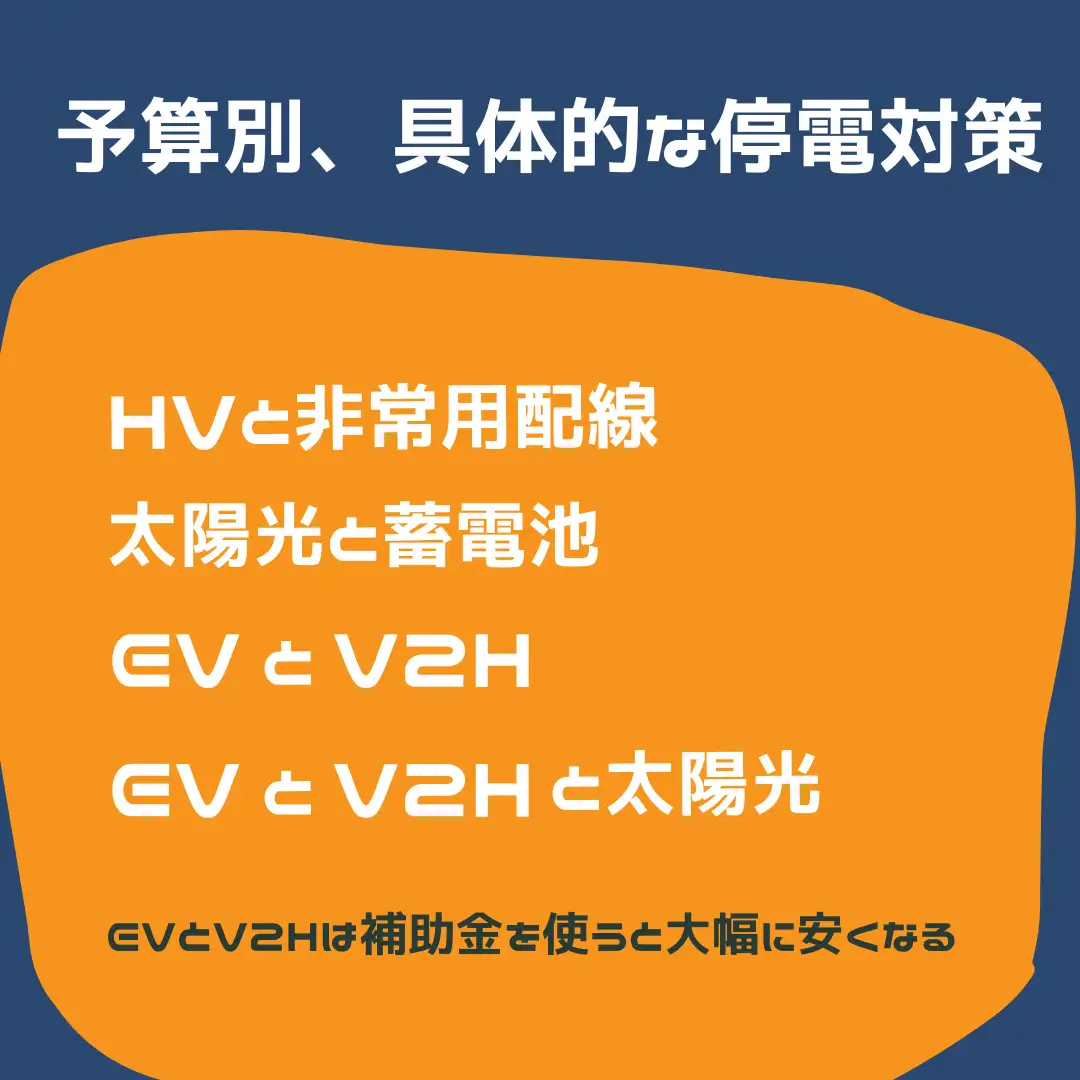 今回の記事では設計段階で考えた停電対策を予算別に紹介します。オール電化住宅を検討中の方、停電対策を考えている方の参考になれば嬉しいです。