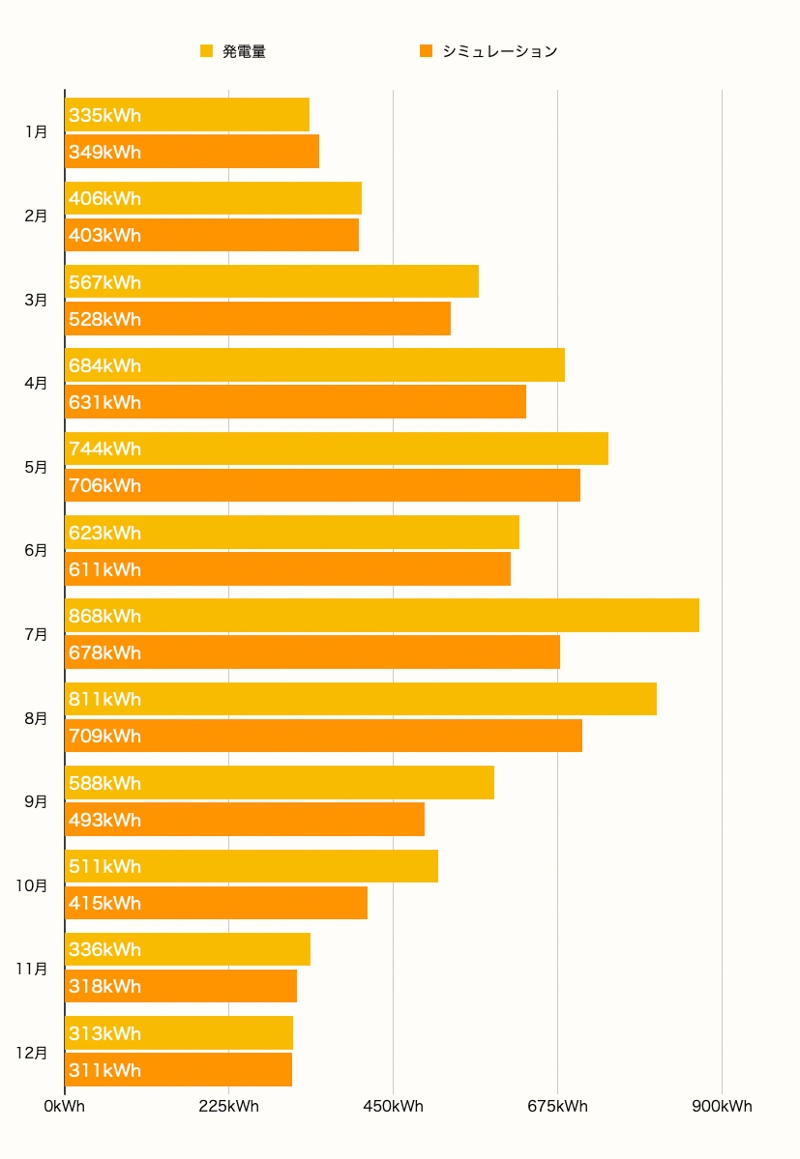 シミュレーションより1割増の発電量で嬉しい反面、月毎の発電状況を確認すると気になる点が見つかりました。
