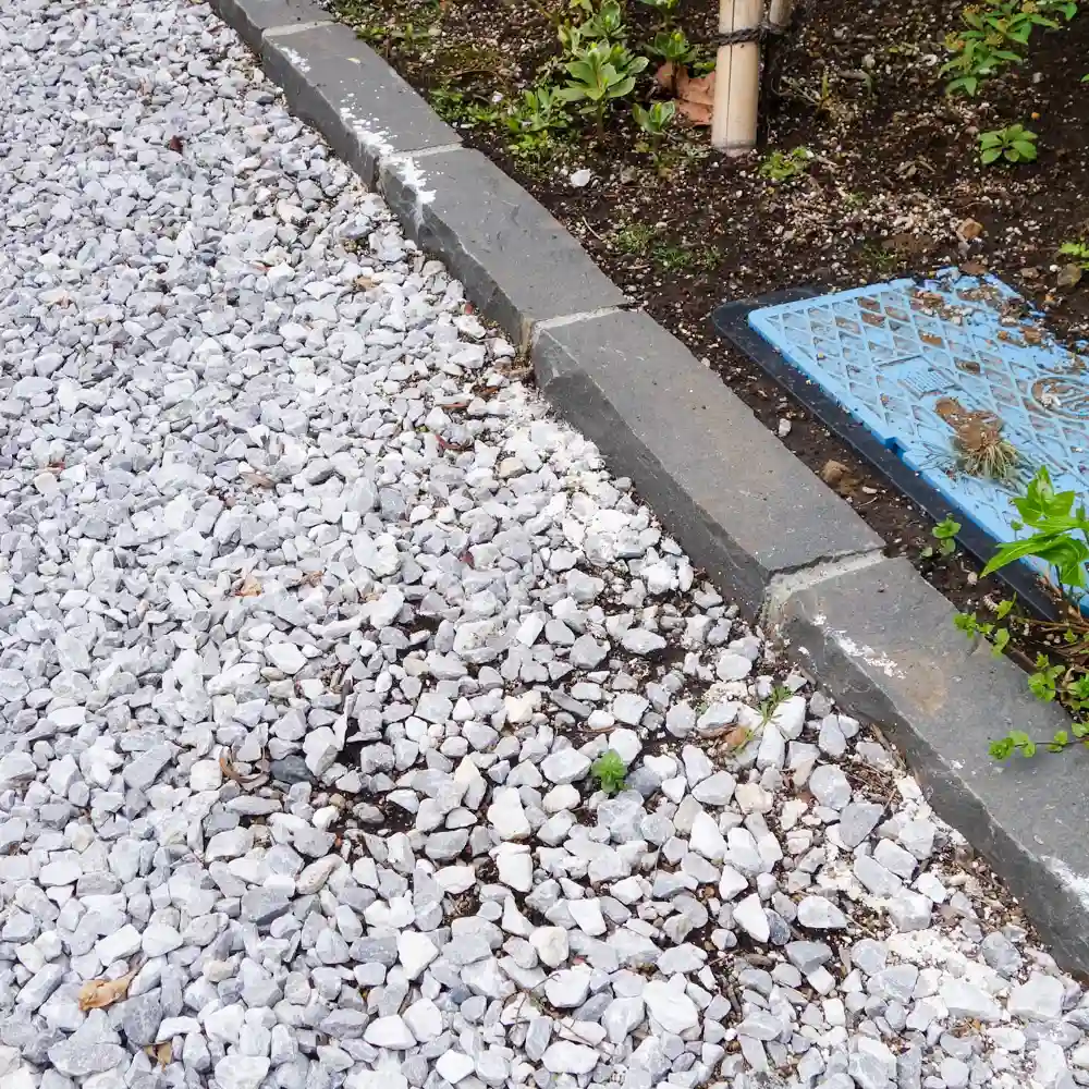 砂利の下には防草シートがありますが雑草は生えてきます。白砂利なので雑草が目立つのも難点です。気になった時に抜いてましたが少し経つとまた…。簡単に抜けますが頻繁に生えてくるので面倒。周りの植物や犬のことを考えると除草剤も使えません。