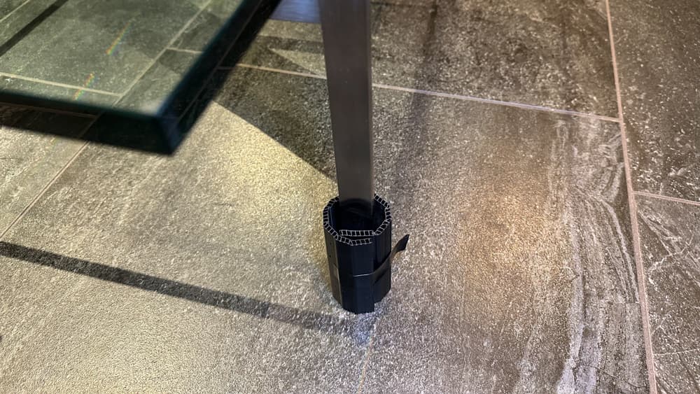 この椅子は貫が低く床から12cmしかありません。360度センサーの円盤(高さ10cm)が心配でしたが、問題なく潜り抜けてます。ただし、カーペットなど敷物がありリフトアップした場合は、本体が2.5cm持ち上がり貫にぶつかるはずです。
