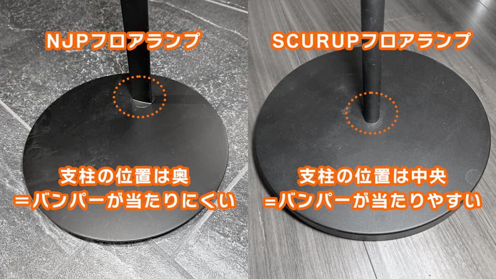 最もトラブルが多いのはフロアスタンドです。全くのノーマークでした。NJPフロアライト(ルイスポールセン)とSCURUPフロアライト(イケア)の2種類ありますが、NJPが特に苦手です。