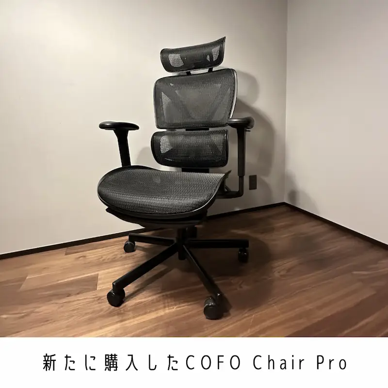 クッションを置いて座面を上げて使ってましたが、フリーランスとしての独立を控え「雲のような座り心地」とされるデスクチェア「COFO Chair Pro」を購入。