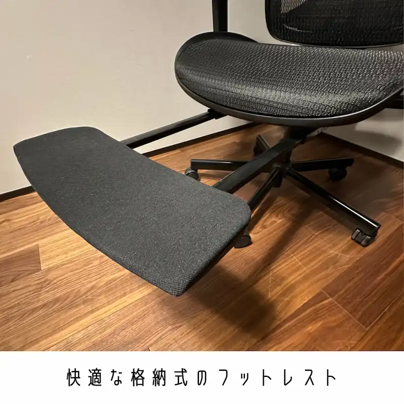 初めてのフットレストは思っていた以上に快適。休憩時はもちろんですが、作業中にも引き出して使っています。