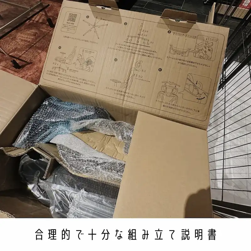 一部重い部品があるので女性だと苦労するかもしれません。必要な工具も付属してます。床の傷つき防止用に大きなエアキャップシートが入っていたのは驚きでした。